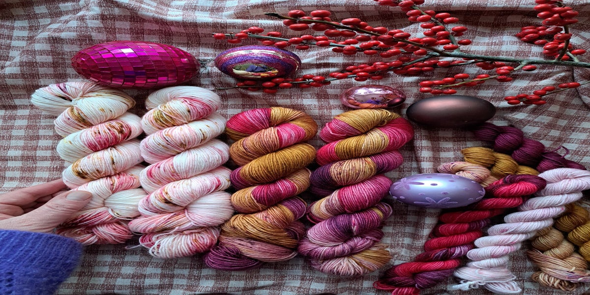 De verfkeuken en ik hebben weer hard gewerkt! Deze maand heb ik een reeks feestelijke garens geverfd: vrolijke mini-sets, sprankelende glitterwol en zachte strengen sokkenwol. Elk garen zit vol fijne, warme tinten — precies die kleuren die je meteen in december-sfeer brengen.