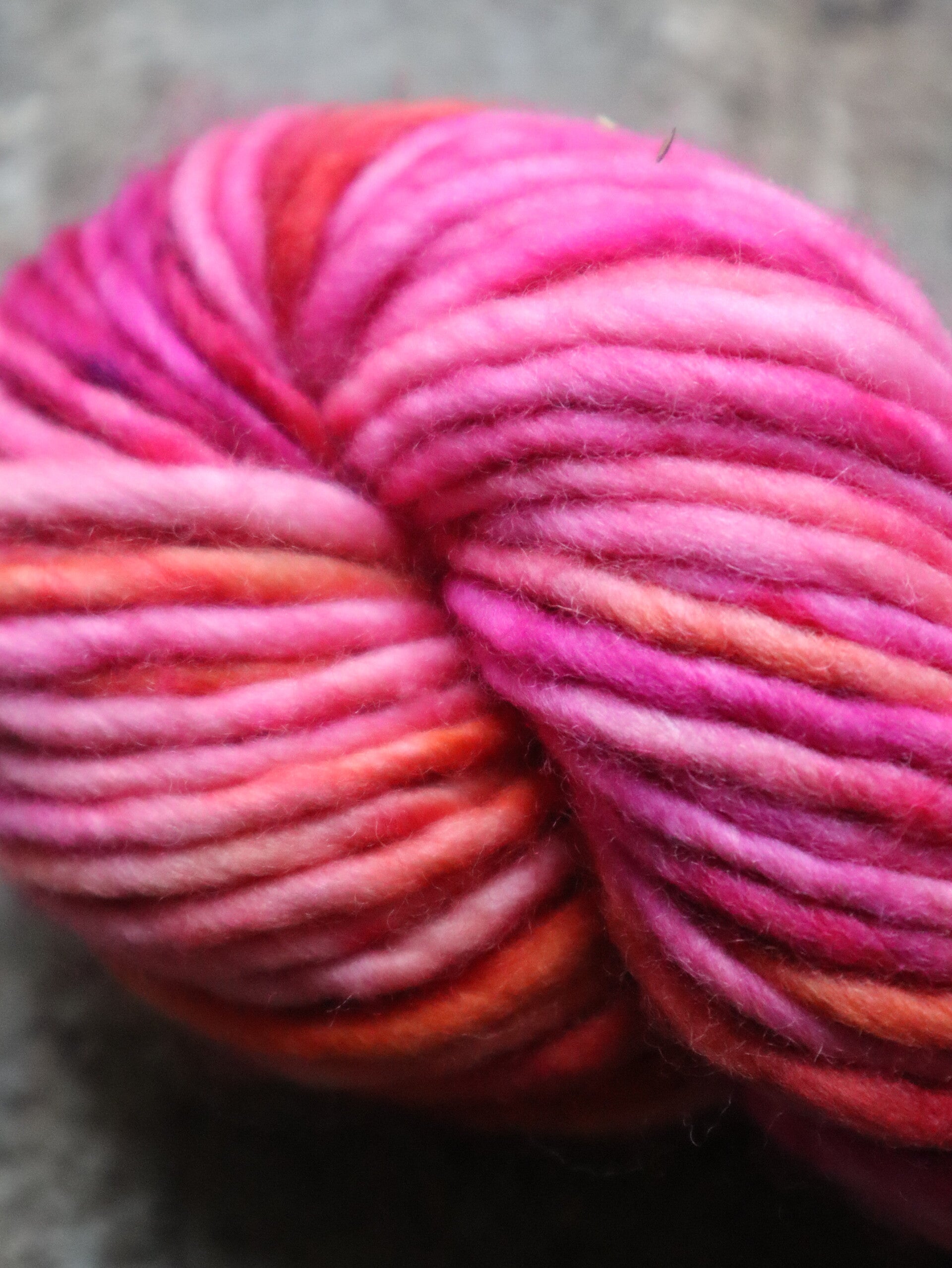 Een heerlijke, dikke, zachte merinowol. Iedere streng wordt apart geverfd, waardoor elke streng uniek is. Perfect om bijvoorbeeld een muts mee te breien!