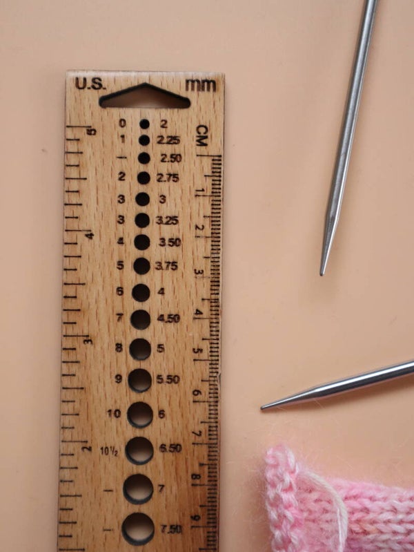 Een breinaaldenmeter is een handige tool bij breinaalden zonder knop of rondbreinaalden zonder maataanduiding, maar is ook handig wanneer de maataanduiding op een naald vervaagd is door veelvuldig gebruik. Deze breinaaldenmeter van PONY is gemaakt van beukenhout, wat zorgt voor een warme, natuurlijke uitstraling. De breinaaldenmeter is geschikt om breinaalden van 2.00-10.00mm te meten. Deze rechthoekige breinaaldenmeter is tevens een meetlat in centimeters en inches.