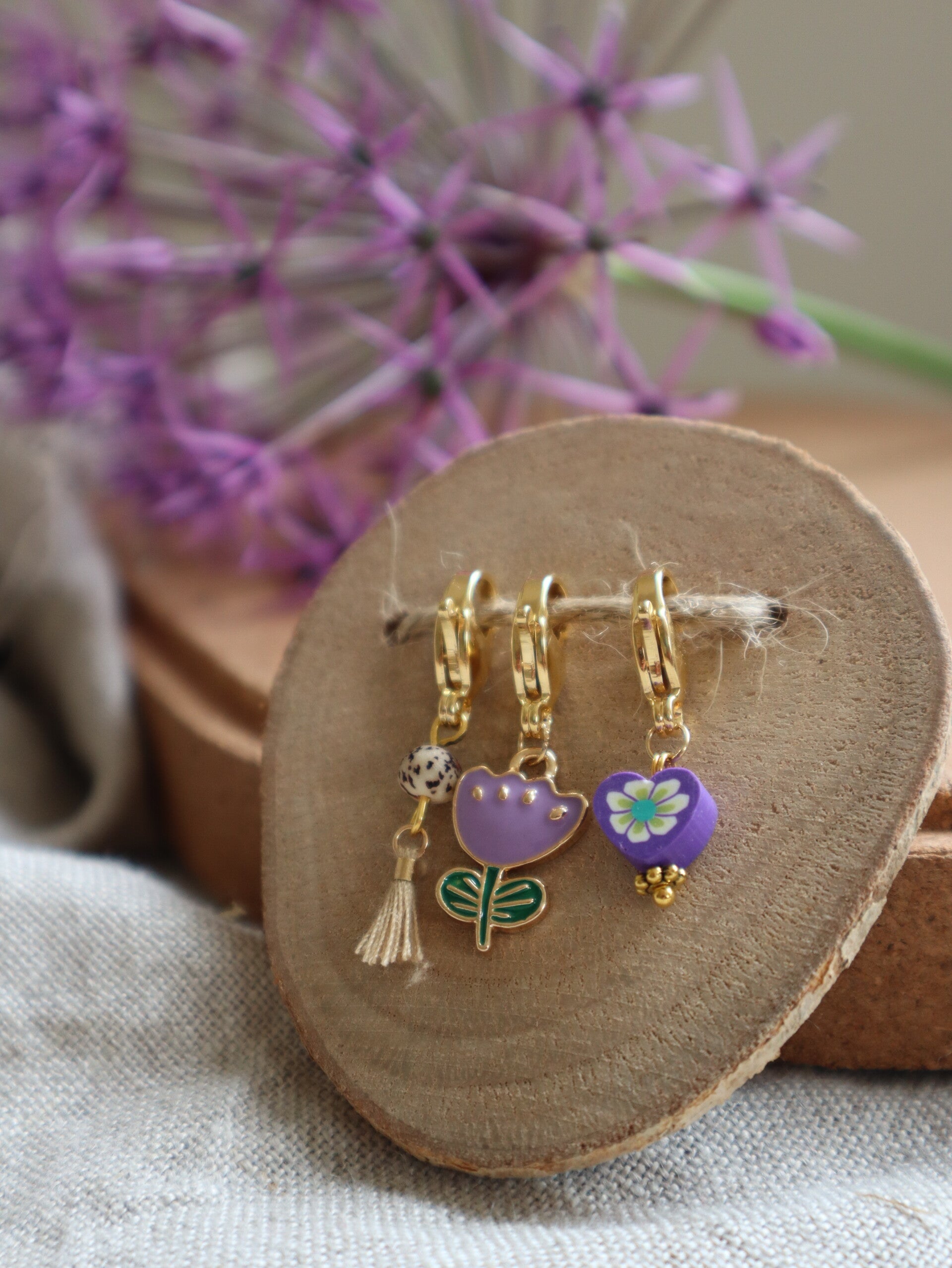 Houten kraaltje met tan-kleurig kwastjeEnamel bloemPolymeer hartje