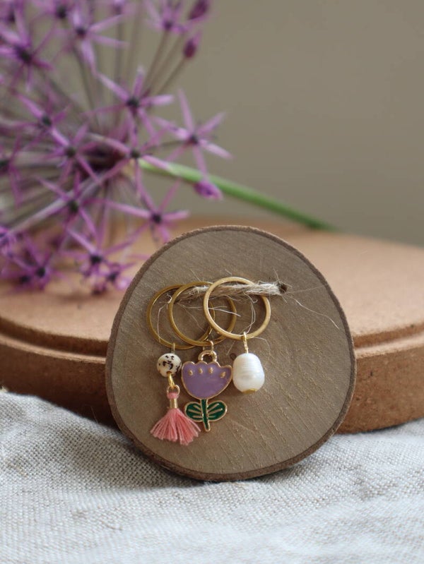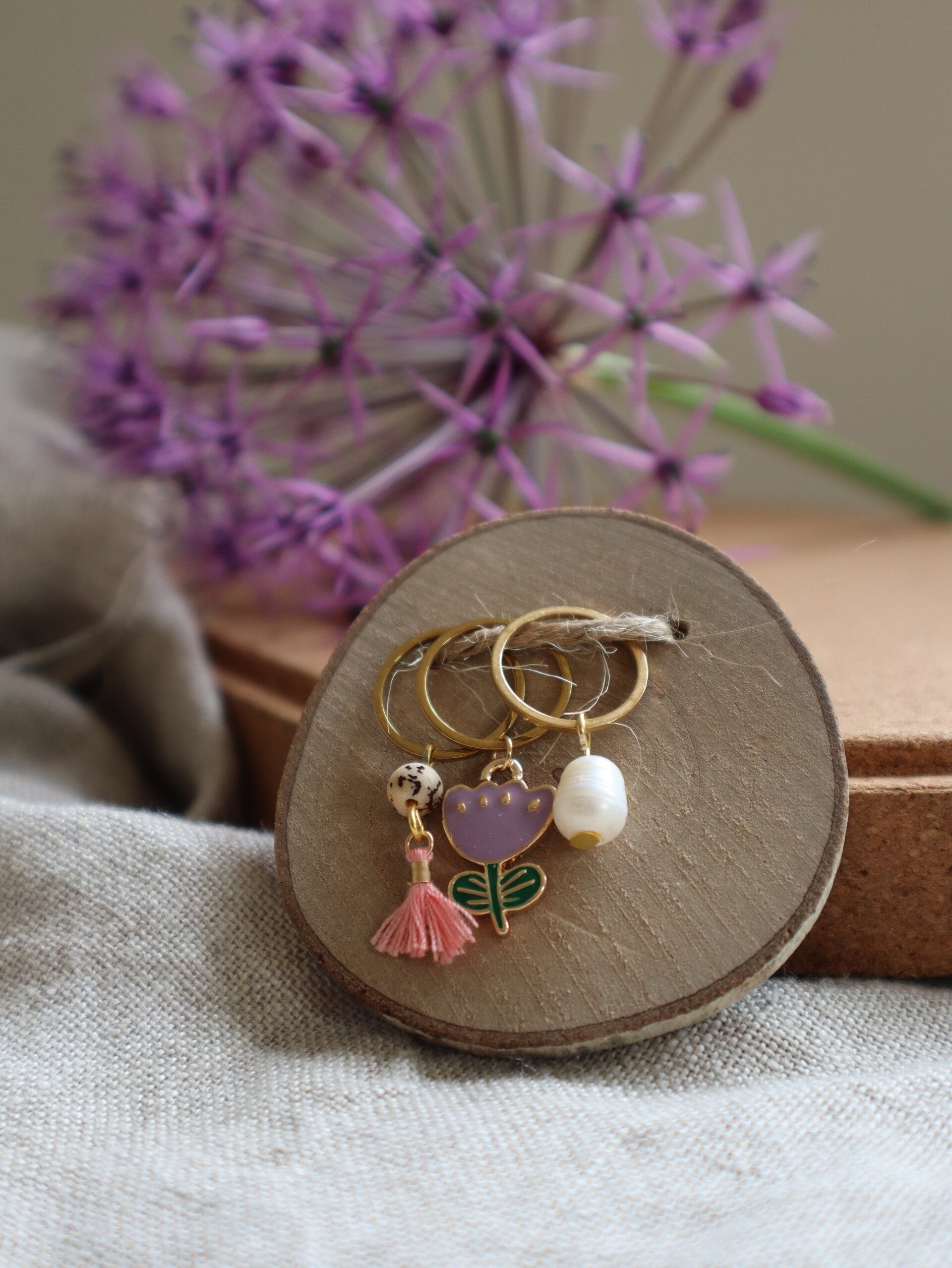 Houten kraaltje met roze kwastjeEnamel bloemZoetwaterparel