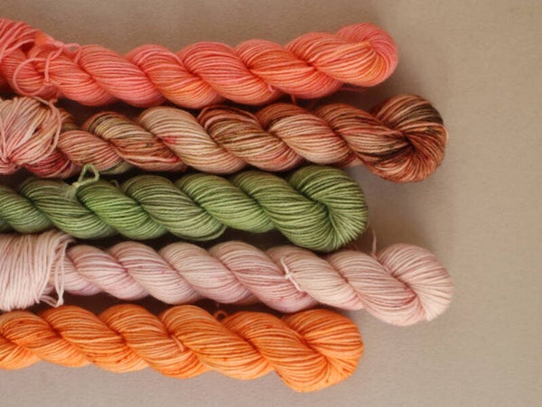'Deze set bestaat uit 5 ministrengen in Zamroze, mandarijn, oudgroen, lichtroze en een zwaargespikkelde.