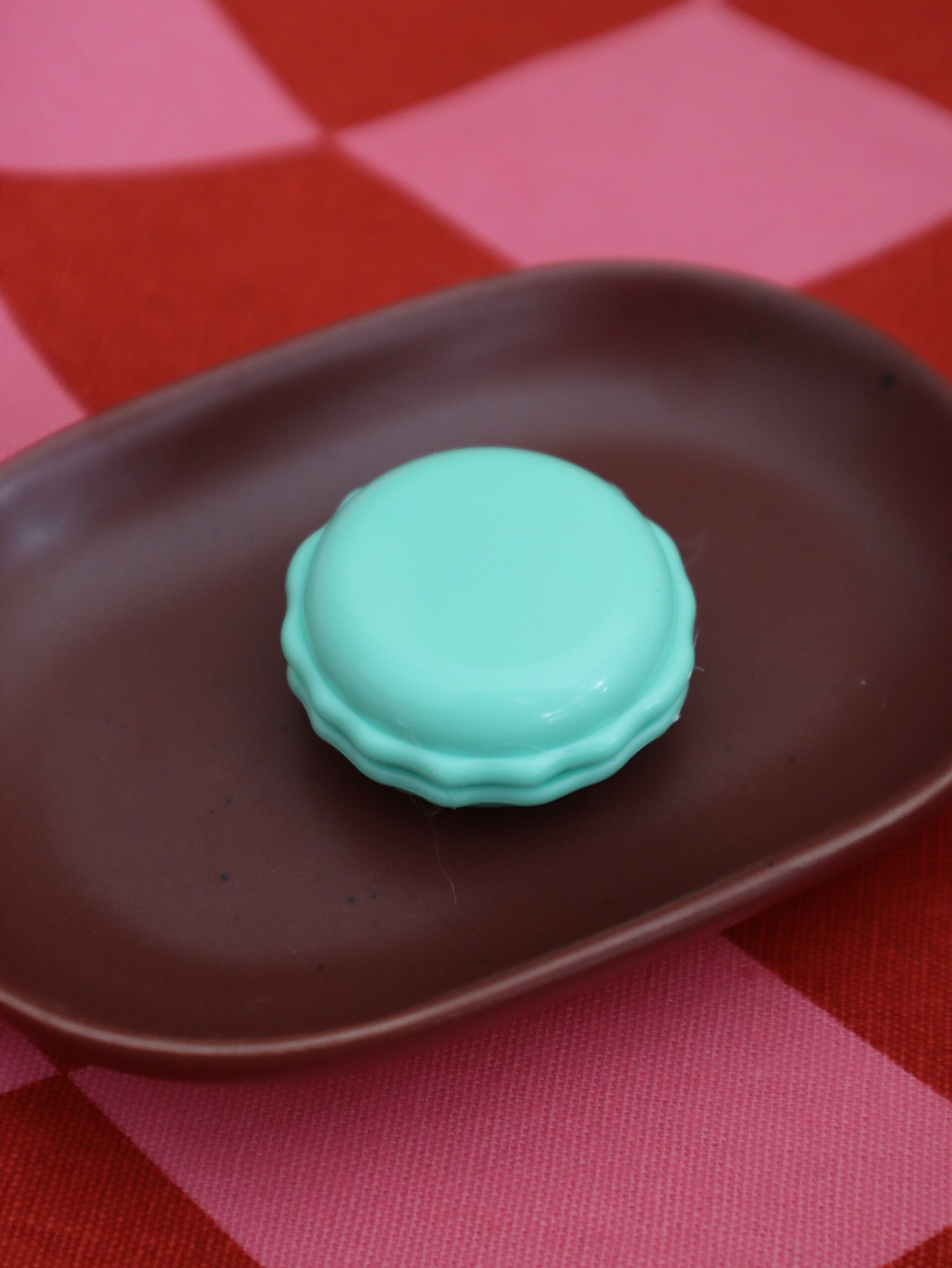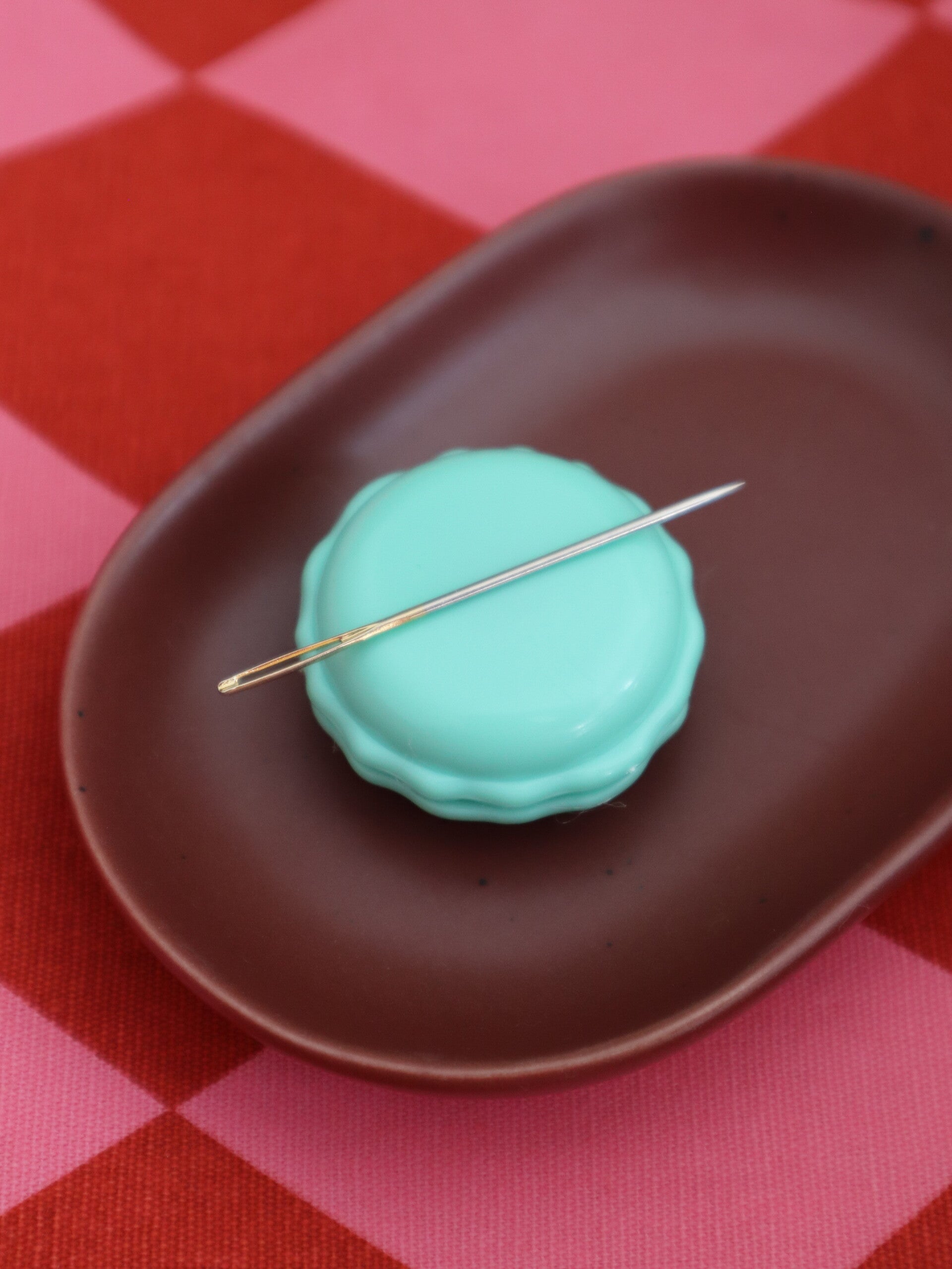 Hoe leuk is deze schattige magnetische macaron, om je naald op te bewaren? Handig tijdens het afhechten van je draadjes en ideaal voor tijdens het borduren. Het midden van de macaron kun je gebruiken om je naald in te prikken.