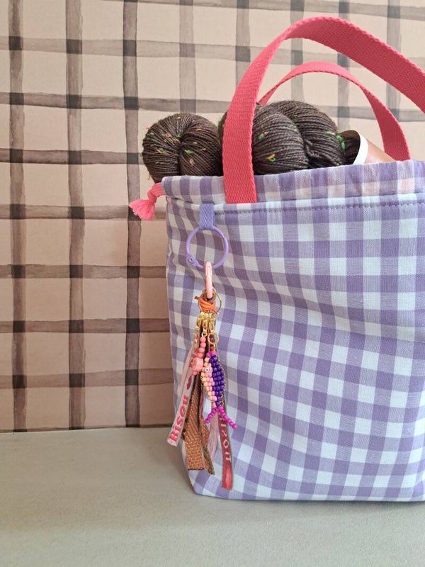 Kleine versieringen voor aan je tas, etui of projectbag. Leuk voor zo, maar ook ideaal voor de handwerkster, want aan de bagcharm hangen 3 hangertjes met een sluiting, die je kunt gebruiken als progress-keeper / steekmarkeerder.
