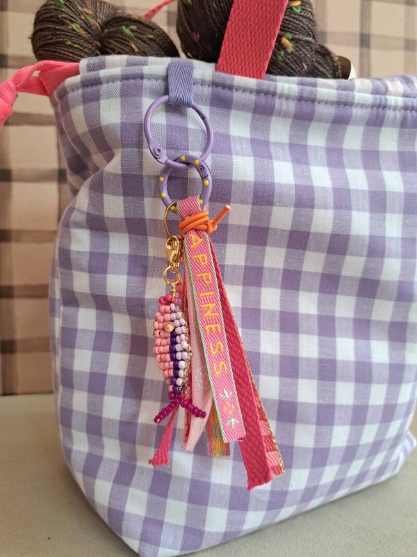 Hoe leuk zijn deze bagcharms? Kleine versieringen voor aan je tas, etui of projectbag. Leuk voor zo, maar ook ideaal voor de handwerkster, want aan de bagcharm hangen 3 hangertjes met een sluiting, die je kunt gebruiken als progress-keeper / steekmarkeerder.