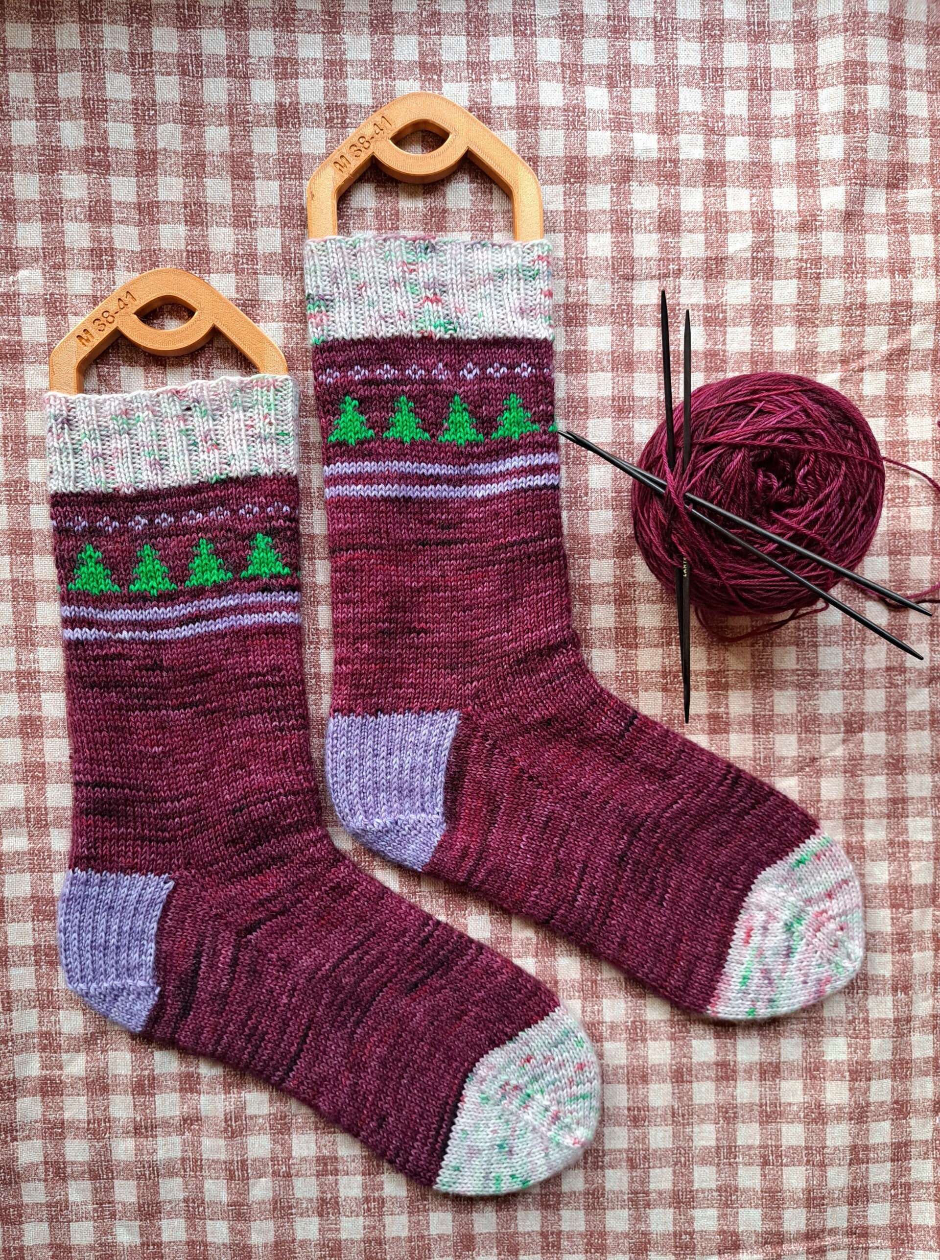 Het patroon van de gebreide sokken is van Mirjam Molenbeek en heet de 'Oh Dennenboom socks'