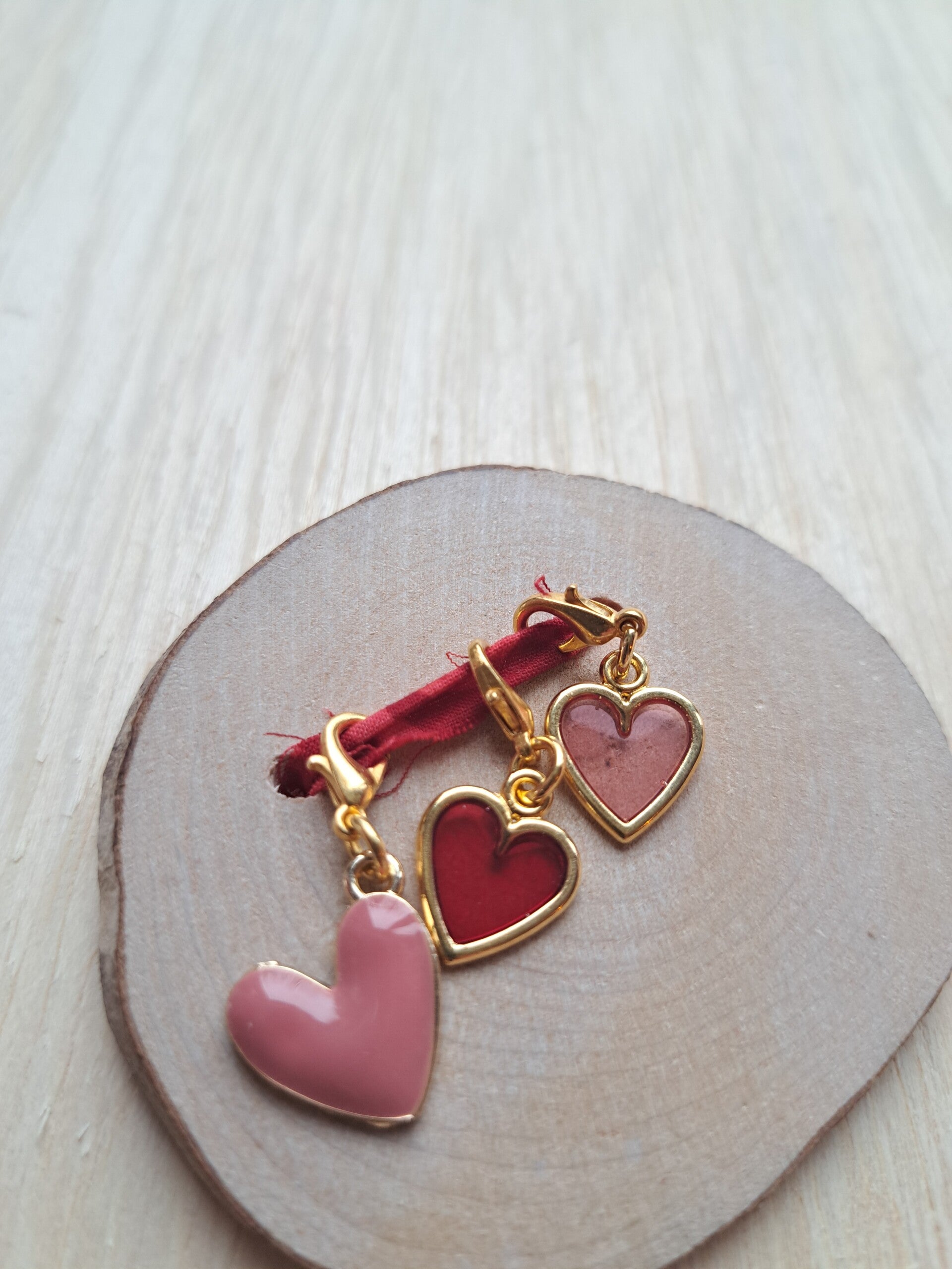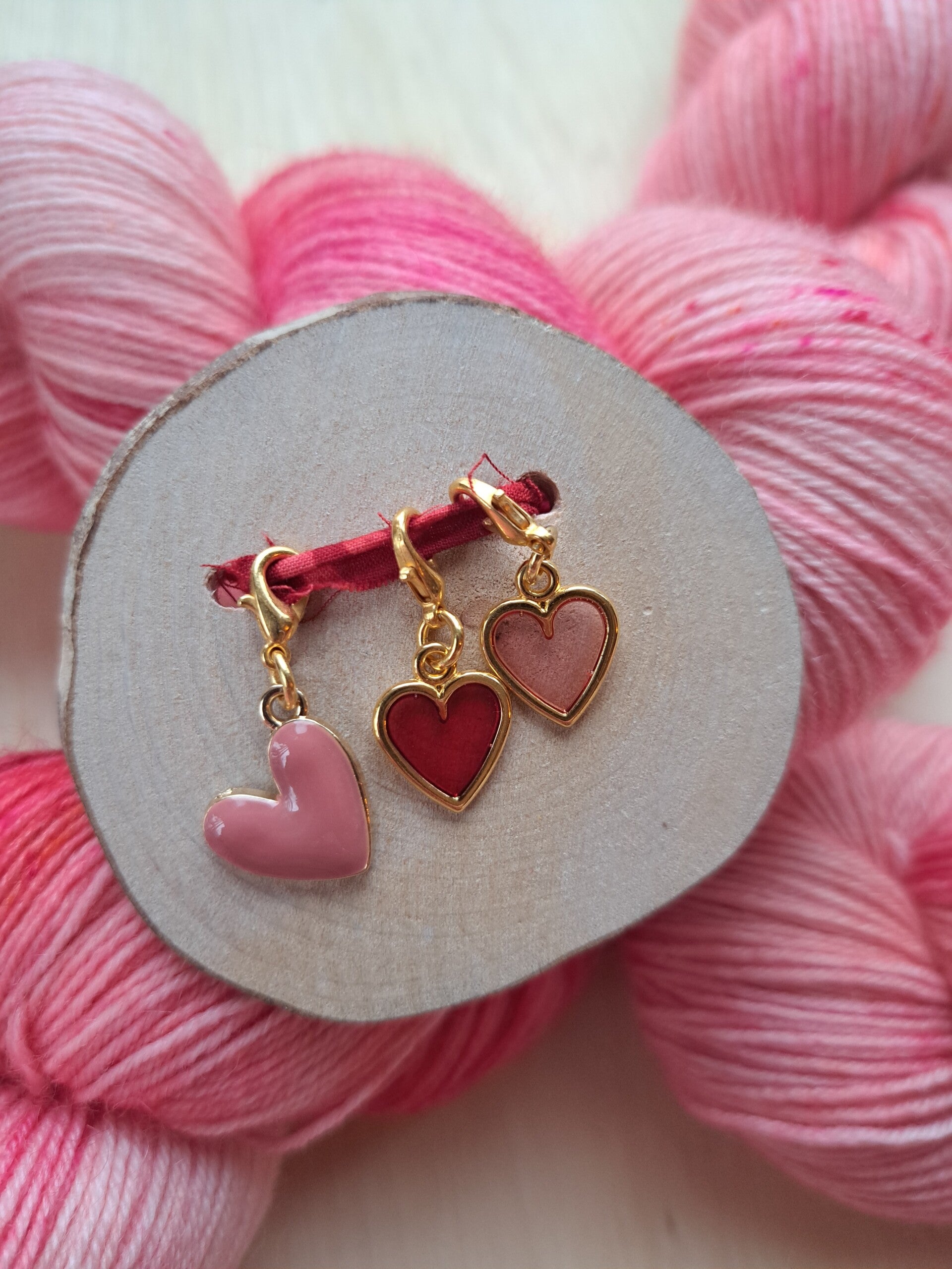 Een setje handgemaakte progresskeepers met hartjes, speciaal gemaakt voor de Valentijns mini-collectie.