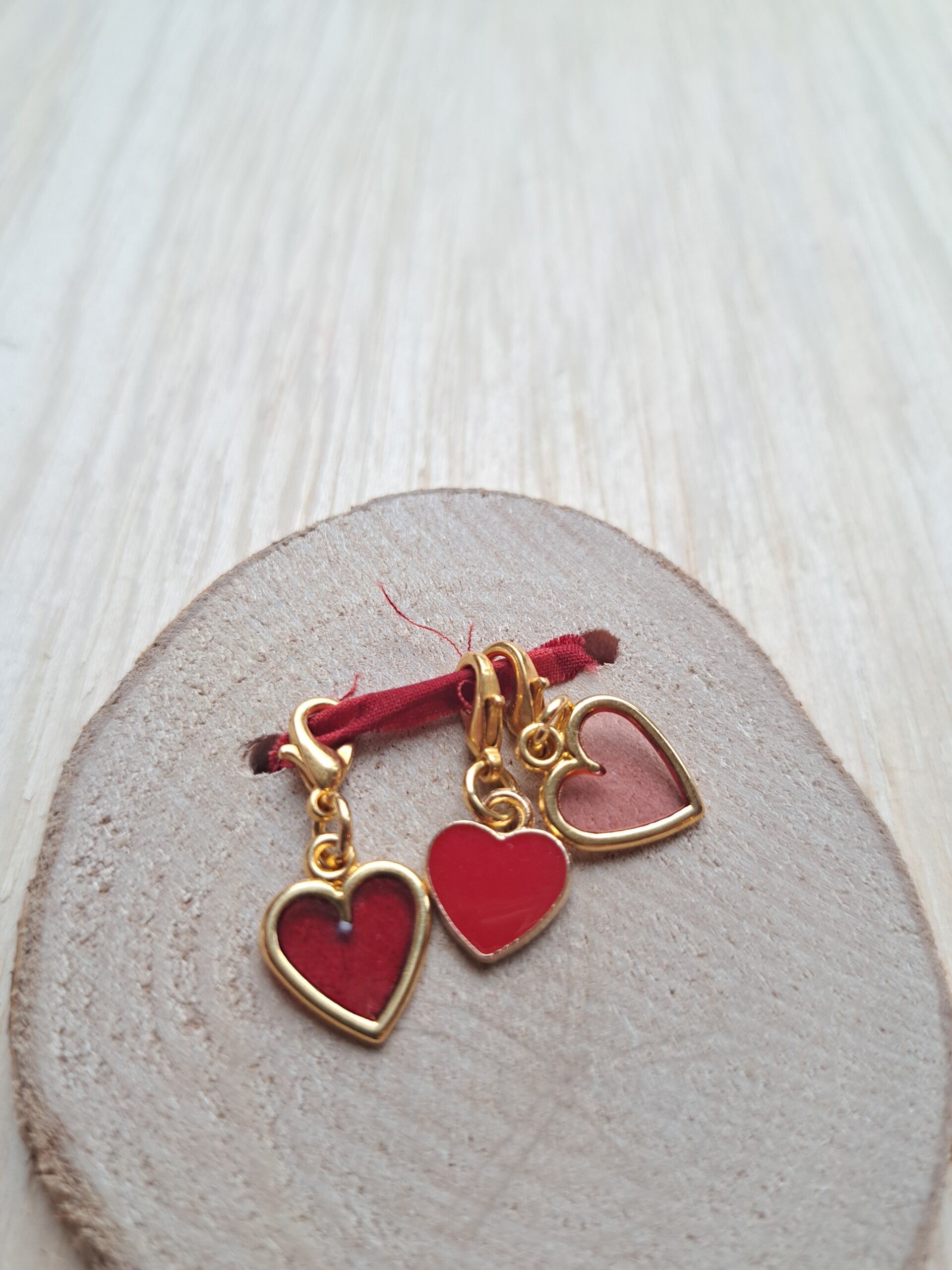Een setje handgemaakte progresskeepers met hartjes, speciaal gemaakt voor de Valentijns mini-collectie.