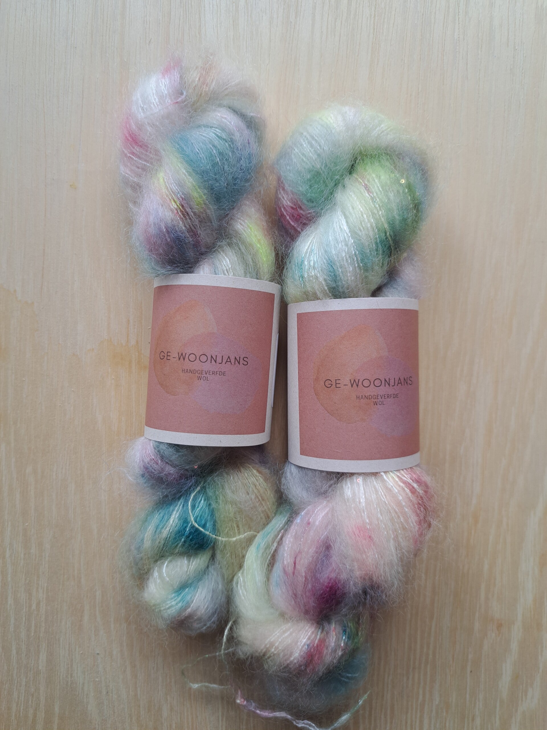Elke streng wordt met de hand geverfd, waardoor elke batch uniek is en prachtige kleurnuances bevat. Perfect voor lichte sjaals, luxe truien, delicate accessoires of als sprankelende meebreidraad.