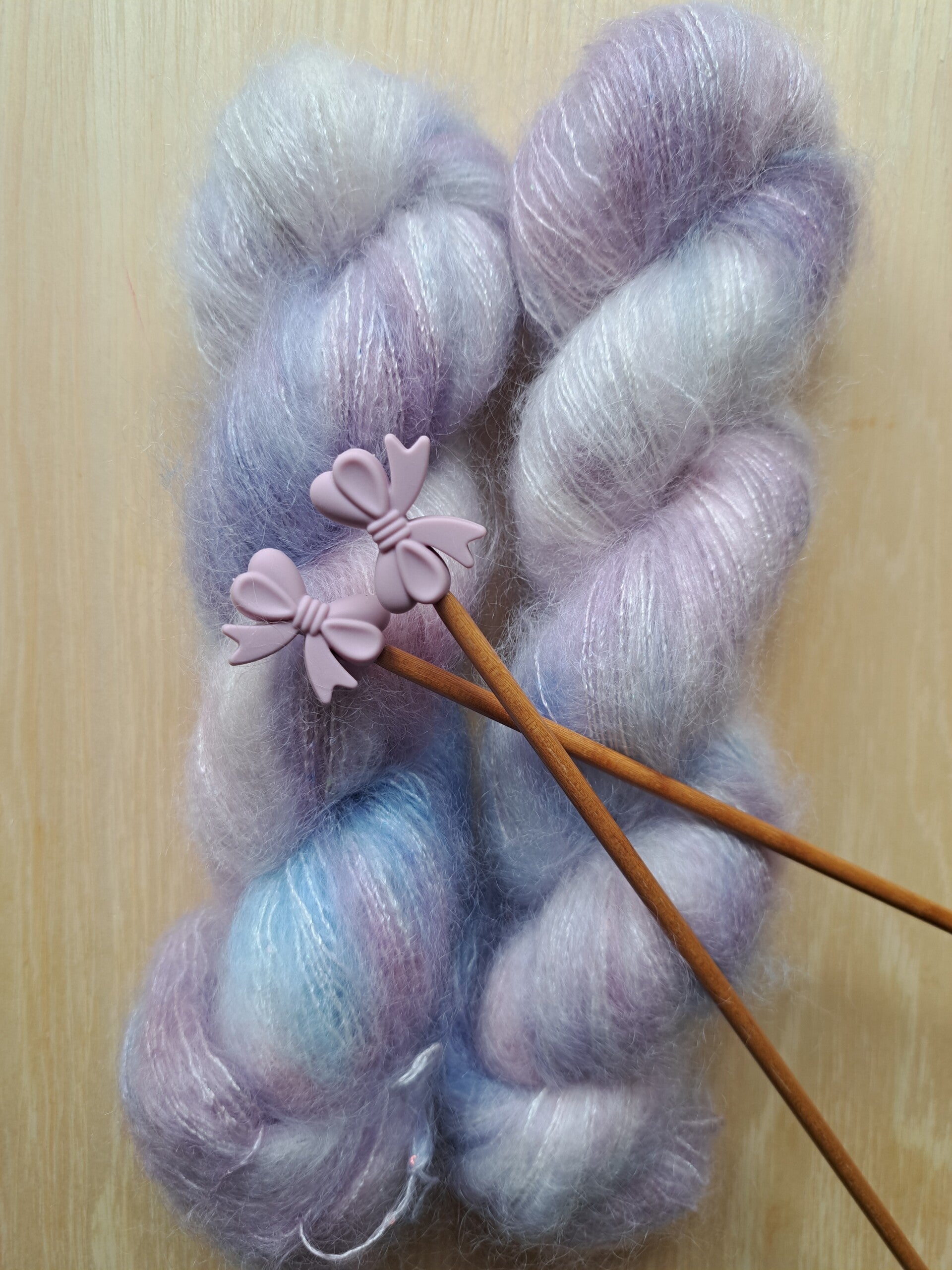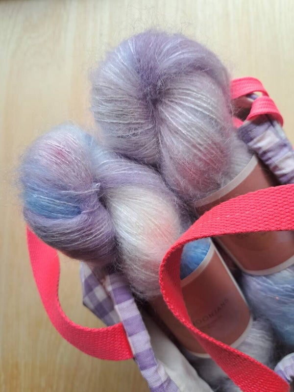 Elke streng wordt met de hand geverfd, waardoor elke batch uniek is en prachtige kleurnuances bevat. Perfect voor lichte sjaals, luxe truien, delicate accessoires of als sprankelende meebreidraad.