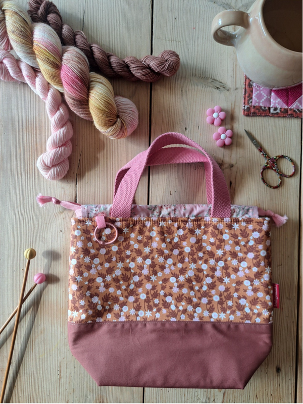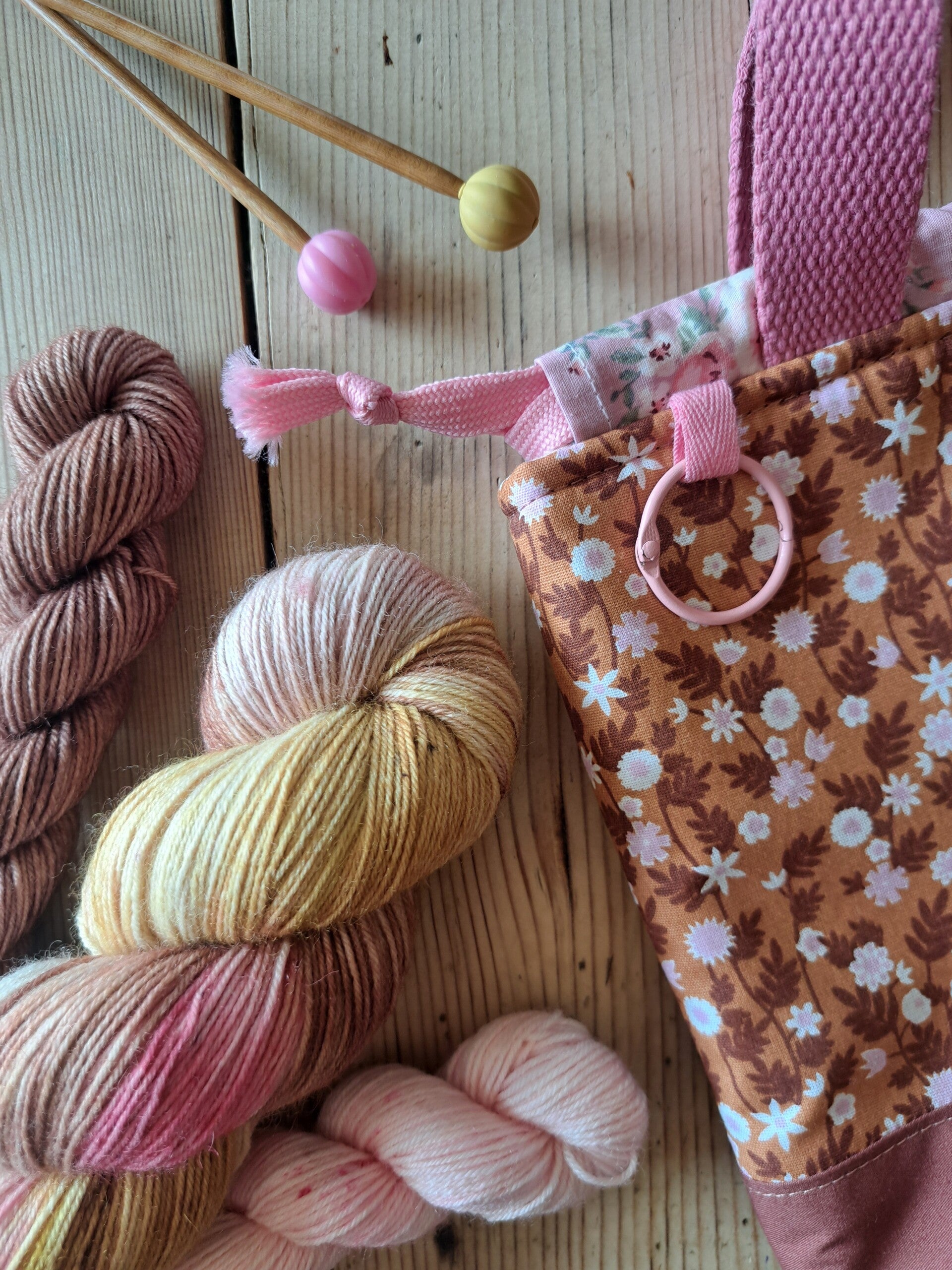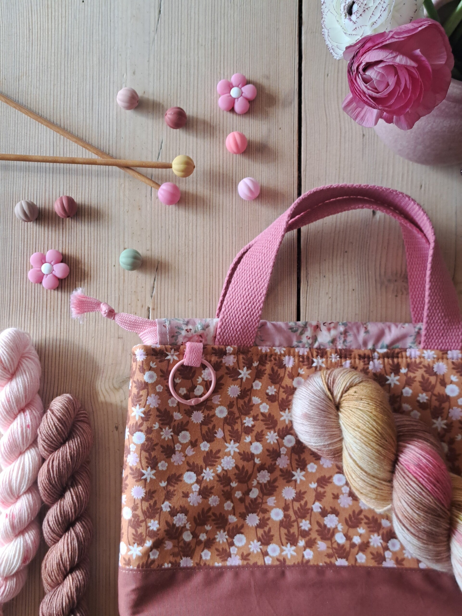Deze project bag is ideaal om je haak- of breiwerk in te bewaren. Er is ruimte voor ongeveer 400-450 gram wol. De tas is lekker stevig, zodat hij rechtop blijft staan maar voelt toch zacht aan. Inclusief een klikring om je steekmarkeerders of favoriete schaartje aan te hangen.