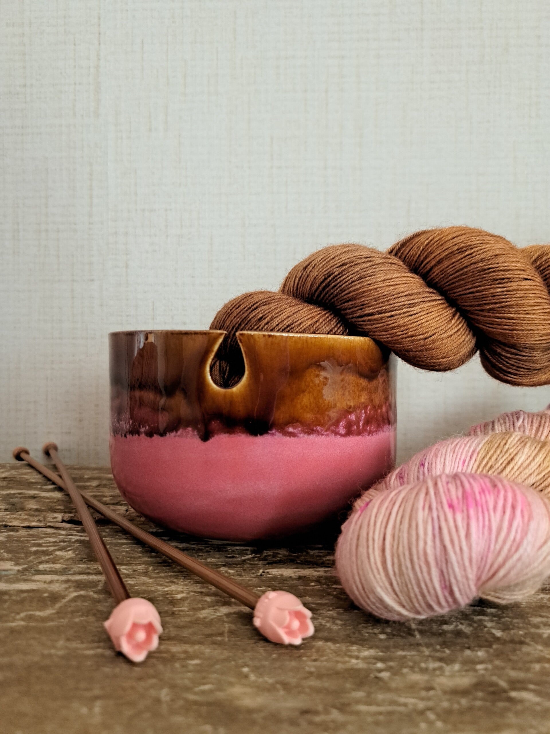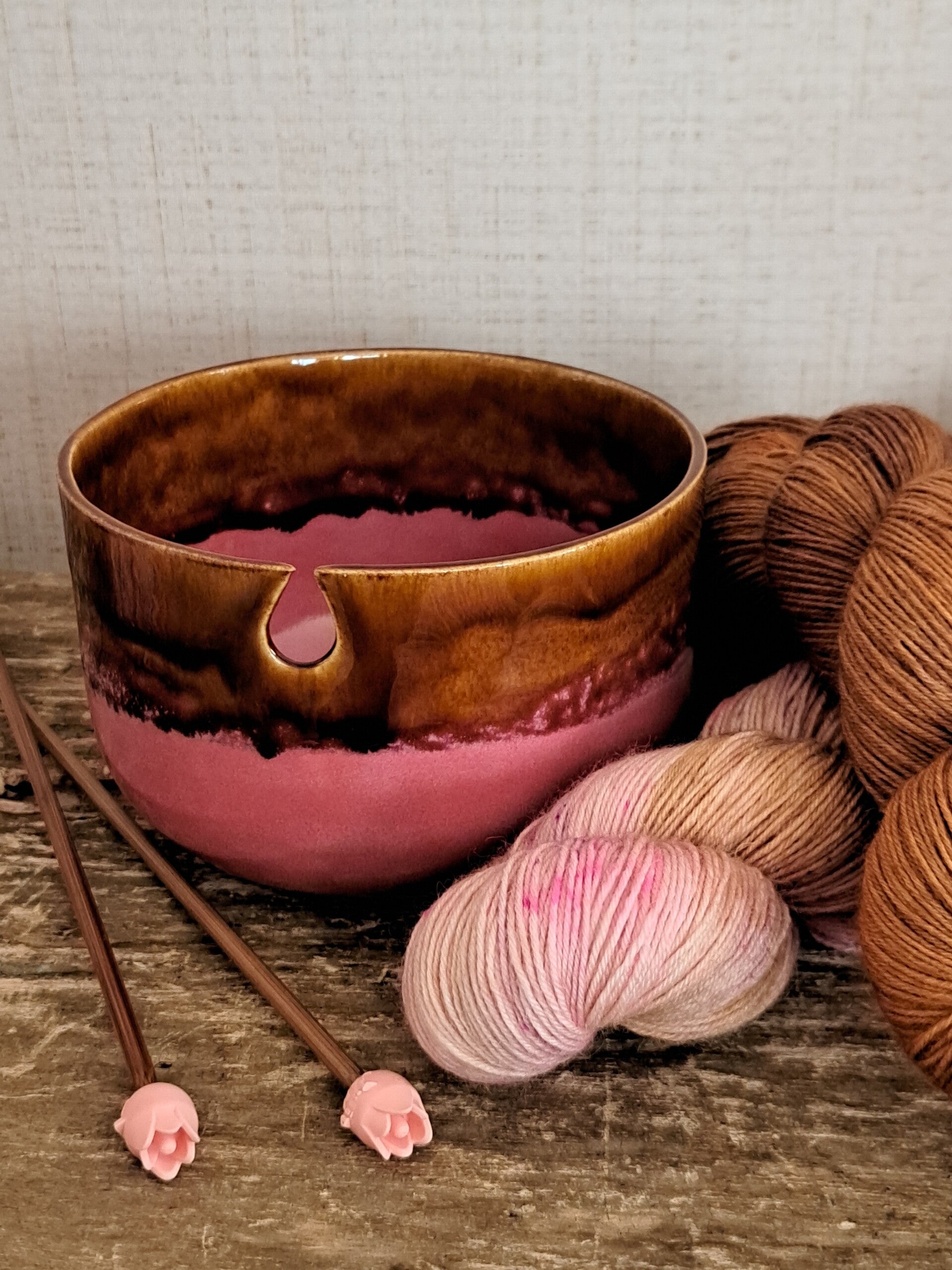 Yarn Bowl - Piece of clay 5 - Caramel / roze